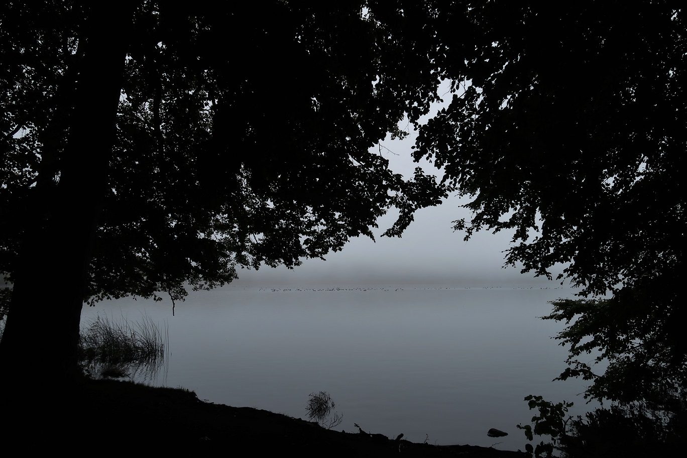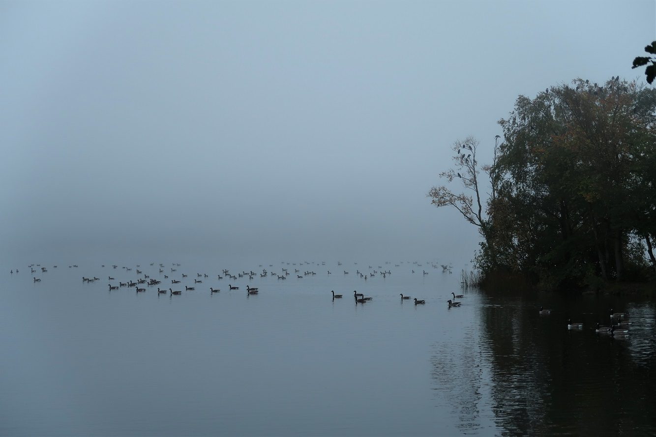 På sjön låg de flesta gässen kvar länge den dagen, kanske hade de fått order från någon i gässens flygledartorn om att vädret var alltför dimmigt för att lyfta.