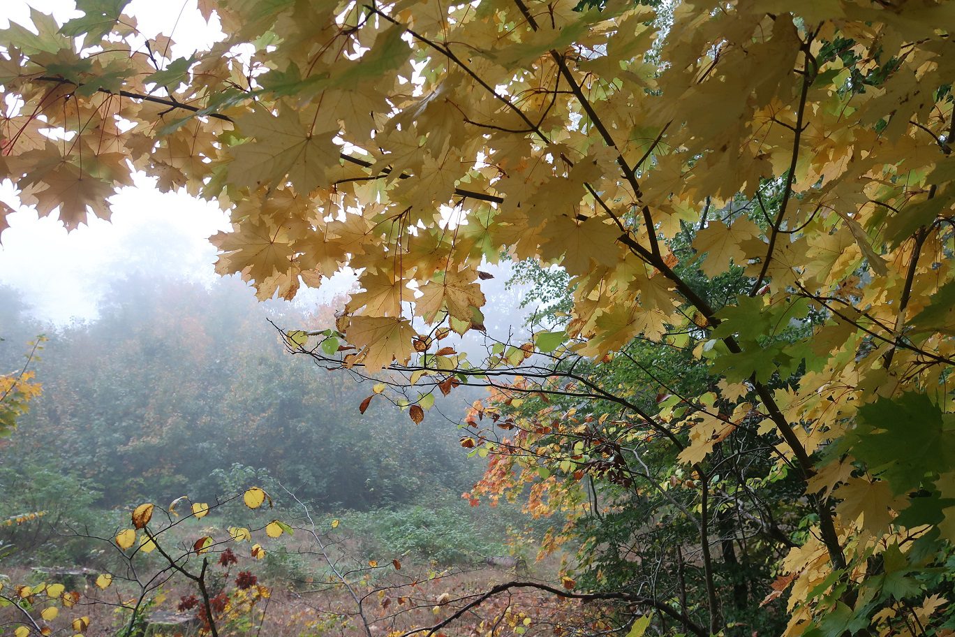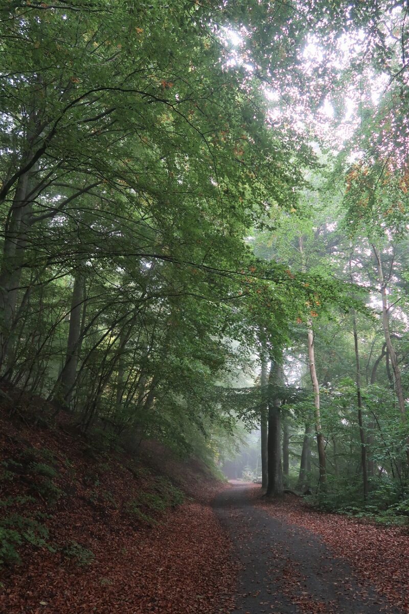 Visst, några blad hade börjat att bli både gula och eldigt röda, men i skogen såg det nästan ut som en skir vårdag med allt det gröna.