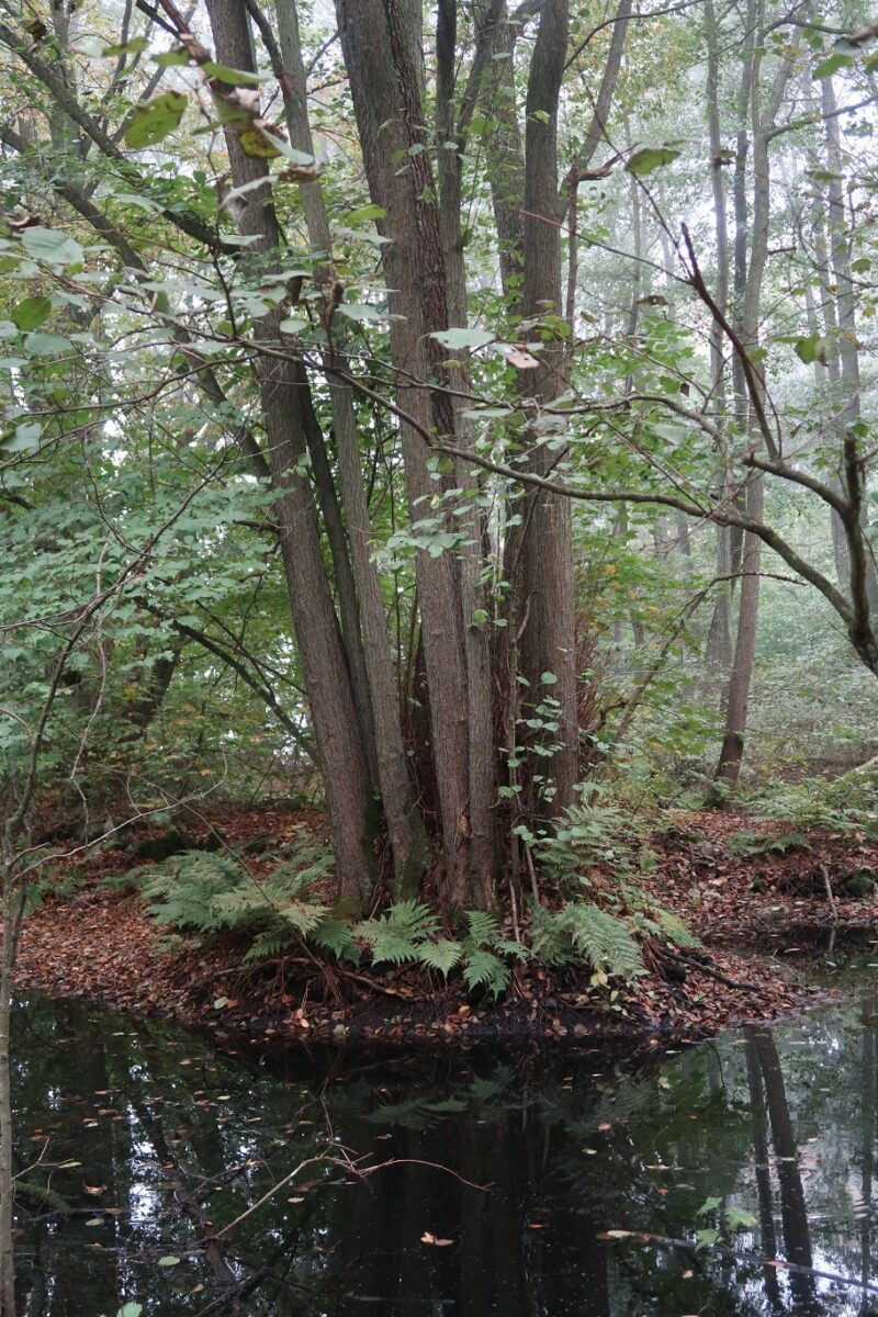 På flera platser den här dimmiga morgonen kände jag en tung doft av vildsvin. Förmodligen var det ett perfekt väder för alla glada grisar som bor runt om i Gyllebo. Jorden hölls fuktig och lite mer lättbökad liksom och det tror jag att de gillade.