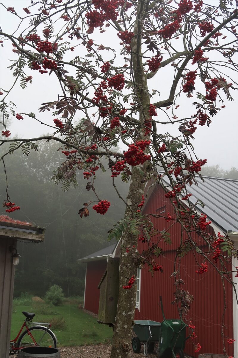 Vackert var det hur som helst, och vår egen lilla rönn såg så gullig ut med alla sina röda bär som lyste upp vackert i den gråa dimman.